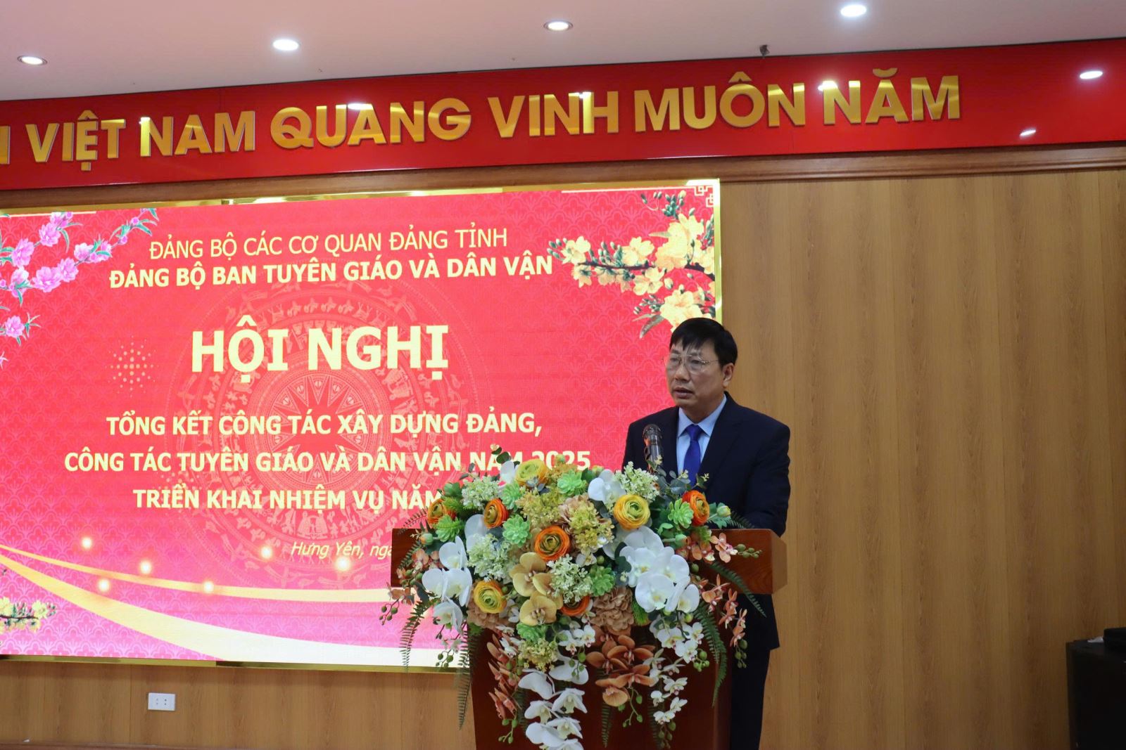 Phát biểu chỉ đạo tại Hội nghị, đồng chí Nguyễn Văn Chiến, Ủy viên Ban Thường vụ Tỉnh ủy, Trưởng Ban Tuyên giáo và Dân vận Tỉnh ủy ghi nhận, biểu dương những kết quả đạt được của Đảng bộ cơ quan trong năm 2025. Đồng chí nhấn mạnh, năm 2026 là năm có ý nghĩa quan trọng, đòi hỏi toàn thể cán bộ, đảng viên tiếp tục nâng cao tinh thần trách nhiệm, giữ vững kỷ luật, kỷ cương; chú trọng công tác xây dựng Đảng về chính trị, tư tưởng, đạo đức; đẩy mạnh đổi mới nội dung, phương thức công tác tuyên giáo và dân vận; tăng cường bám sát cơ sở, chủ động nắm bắt tình hình tư tưởng, dư luận xã hội; phát huy vai trò nêu gương của cán bộ, đảng viên, nhất là người đứng đầu, góp phần hoàn thành thắng lợi các nhiệm vụ chính trị được giao.