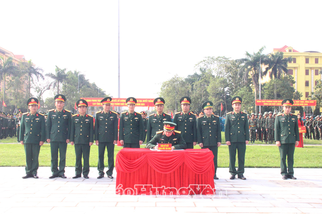 Đại diện các cơ quan, đơn vị của Bộ CHQS tỉnh ký giao ước thi đua.
