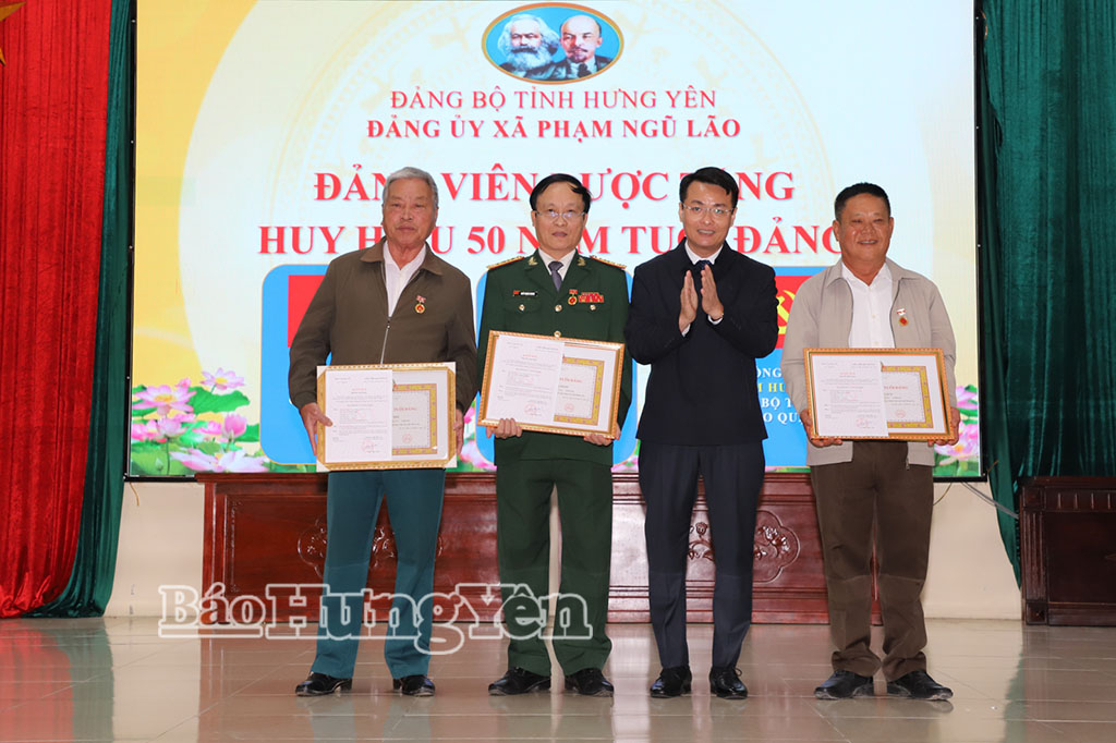 Đợt 7/11, Đảng bộ xã Phạm Ngũ Lão có 20 đảng viên được trao tặng, truy tặng Huy hiệu 70, 60, 55, 50, 45, 40, 30 năm tuổi Đảng.