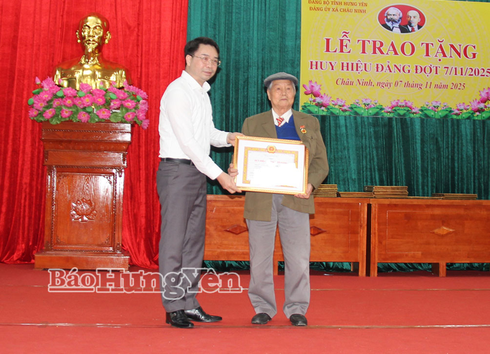 Tại buổi lễ, 20 đảng viên được trao tặng Huy hiệu Đảng đợt 7/11/2025. Trong đó, 1 đảng viên được trao tặng Huy hiệu 70 năm tuổi Đảng; 2 đảng viên được trao tặng Huy hiệu 60 năm tuổi Đảng; 2 đảng viên được trao tặng Huy hiệu 50 năm tuổi Đảng; còn lại là các đảng viên được trao tặng Huy hiệu 45 năm, 40 năm, 30 năm tuổi Đảng.