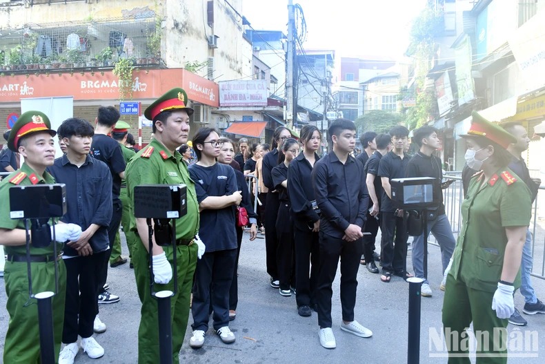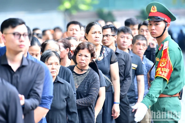 Ngay từ sáng sớm, các tầng lớp nhân dân tiếp tục xếp hàng trên các tuyến phố hướng về Nhà tang lễ Quốc gia số 5 Trần Thánh Tông (Hà Nội).