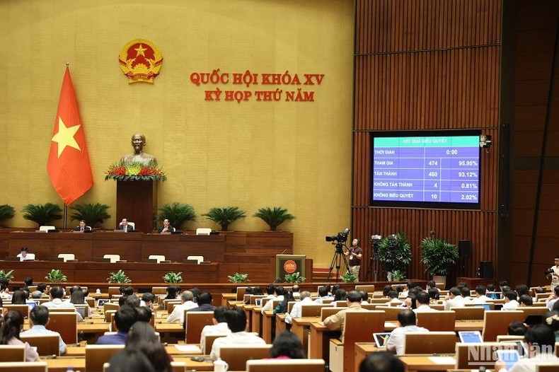 Quốc hội thông qua Luật Đấu thầu (sửa đổi) với tỷ lệ tán thành đạt 93,12%. (Ảnh: DUY LINH)