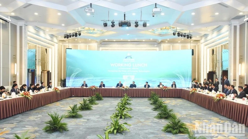 Trưa 26/2, trong khuôn khổ Diễn đàn Tương lai ASEAN 2025, tại Hà Nội, Thủ tướng Phạm Minh Chính chủ trì Toạ đàm ăn trưa làm việc với chủ đề “ASEAN đón đầu tương lai: Làm chủ công nghệ mới nổi”.