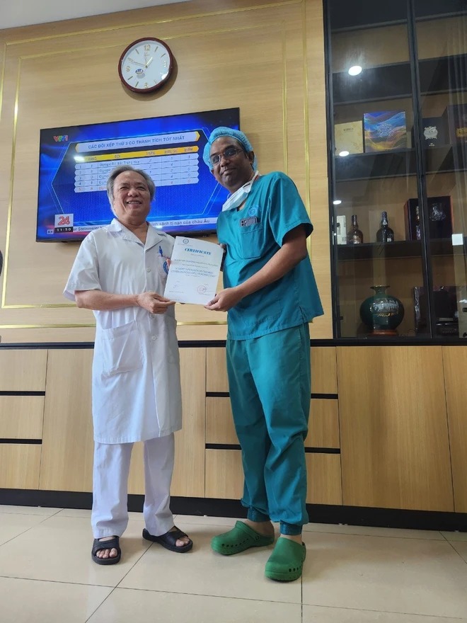 Sau khóa đào tạo, các học viên nước ngoài đã được cấp chứng nhận hoàn thành khóa học phẫu thuật nội soi tuyến giáp do chính Phó giáo sư Trần Ngọc Lương và tiến sỹ Phan Hoàng Hiệp - Giám đốc Bệnh viện Nội tiết Trung ương trao.