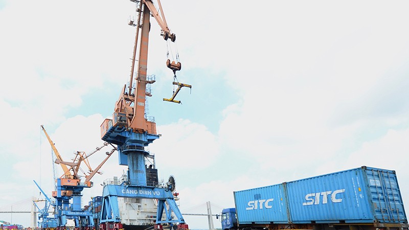 Cảng Ðình Vũ (Hải Phòng) là nơi vận chuyển nhiều mặt hàng như: Thủy sản, rau quả, cà-phê... (Ảnh Trần Quốc)