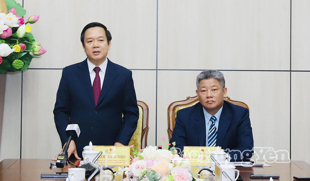 Phát biểu tại hội nghị, đồng chí Phạm Quang Ngọc, Ủy viên Ban Chấp hành Trung ương Đảng, Bí thư Tỉnh ủy chúc mừng đồng chí Nguyễn Mạnh Quyền được tín nhiệm bầu giữ chức Chủ tịch UBND tỉnh. Đồng chí gửi lời cảm ơn tập thể lãnh đạo UBND tỉnh, lãnh đạo các sở, ngành, địa phương trong thời gian qua đã luôn ủng hộ, tạo điều kiện, tham mưu kịp thời các giải pháp, từ đó giúp đồng chí hoàn thành tốt nhiệm vụ trên cương vị là Phó Bí thư Tỉnh ủy, Chủ tịch UBND tỉnh.