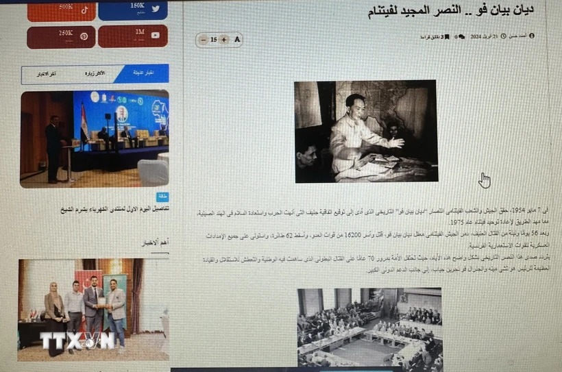 Trong bài viết với nhan đề "Chiến thắng Điện Biên Phủ - mốc son rực rỡ trong lịch sử Việt Nam" đăng ngày 21/4 trên báo Cairo Today, một trong những báo điện tử uy tín hàng đầu ở Ai Cập, nhà báo Ai Cập Ahmed Hassan đã nêu bật ý nghĩa to lớn của chiến thắng Điện Biên Phủ của quân và dân Việt Nam, đồng thời đánh giá dưới sự lãnh đạo của Đảng Cộng sản Việt Nam, đất nước và nhân dân Việt Nam đang vững bước trên con đường phát triển thịnh vượng, với nhiều thành tựu to lớn có ý nghĩa lịch sử sau gần 40 năm Đổi mới.