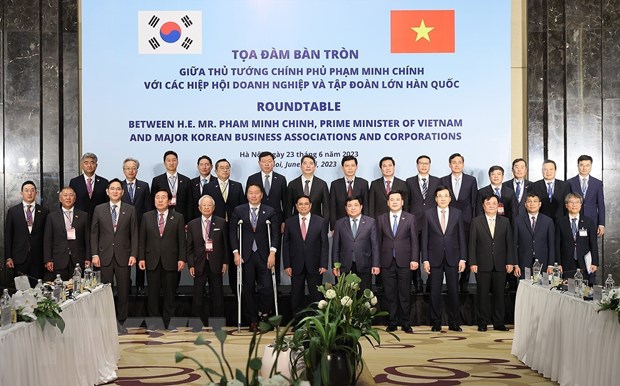 Thủ tướng Phạm Minh Chính với các doanh nghiệp Hàn Quốc. (Ảnh: Dương Giang/TTXVN)
