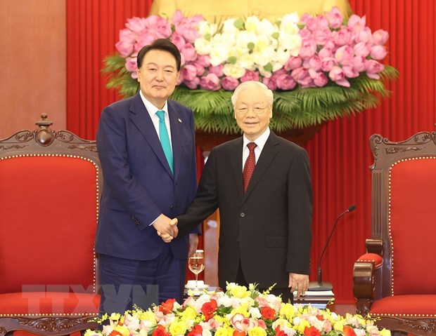 Hãng tin Yonhap dẫn lời ông Lee Do-woon, người phát ngôn của Tổng thống Hàn Quốc, cho biết Tổng thống Yoon Suk Yeol đã gặp Tổng Bí thư Đảng Cộng sản Việt Nam Nguyễn Phú Trọng vào ngày 23/6 và thảo luận các biện pháp phát triển quan hệ song phương.