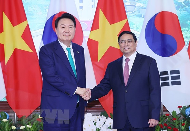 Theo người phát ngôn Lee Do-woon, tại cuộc gặp với Thủ tướng Phạm Minh Chính, Tổng thống Yoon Suk Yeol đã nhấn mạnh sự cần thiết hợp tác mở rộng chuỗi cung ứng khoáng sản quan trọng, hợp tác trong lĩnh vực năng lượng và quốc phòng.