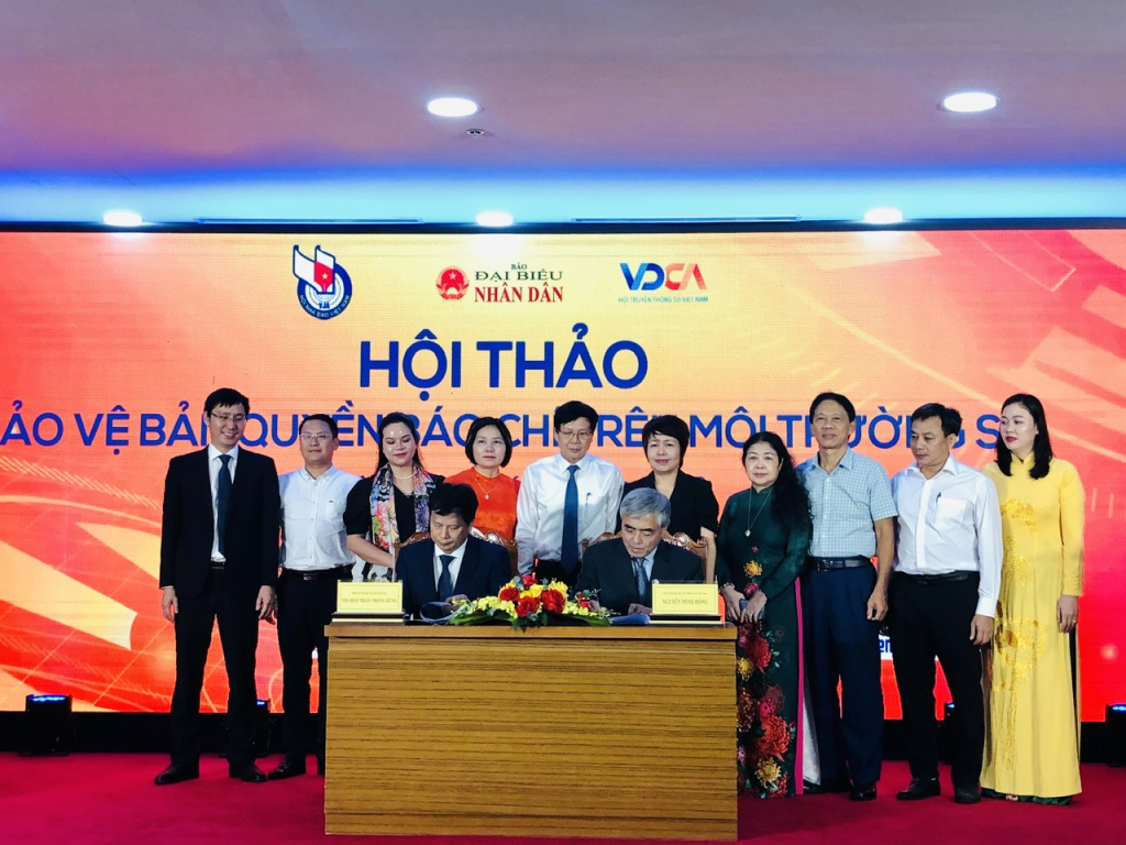 Trong khuôn khổ hội thảo diễn ra lễ ký kết thỏa thuận hợp tác giữa Hội Nhà báo Việt Nam và Hội Truyền thông số Việt Nam về “Nâng cao năng lực, kiến thức thực thi pháp luật bản quyền, phổ biến kiến thức và đạo đức văn hóa cơ quan báo chí trong thực thi bảo vệ bản quyền tác phẩm báo chí”.