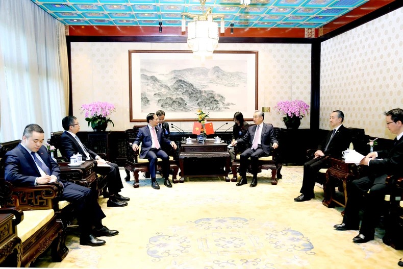 Ngày 26/6, tại Bắc Kinh, Trung Quốc, trong khuôn khổ chương trình hoạt động của Thủ tướng Chính phủ Phạm Minh Chính dự Hội nghị thường niên các nhà tiên phong lần thứ 15 của Diễn đàn Kinh tế thế giới tổ chức tại Đại Liên và làm việc tại Trung Quốc, Bộ trưởng Ngoại giao Bùi Thanh Sơn đã hội kiến với Bộ trưởng Ngoại giao Trung Quốc Vương Nghị.
