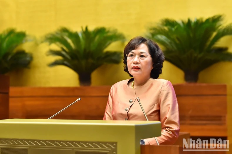 Thống đốc Ngân hàng Nhà nước Việt Nam Nguyễn Thị Hồng giải trình, làm rõ ý kiến đại biểu Quốc hội nêu. (Ảnh: THỦY NGUYÊN)