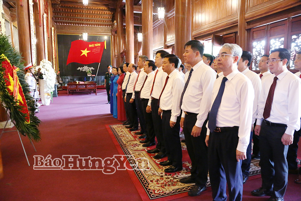 Đoàn đại biểu của tỉnh dâng hương tại Nhà lưu niệm Bác Hồ (phường Phố Hiến).