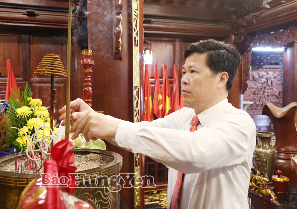Đoàn đại biểu của tỉnh dâng hương, dâng hoa viếng các anh hùng liệt sĩ tại Đền thờ Liệt sĩ tỉnh (phường Trần Hưng Đạo).