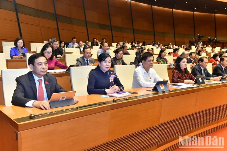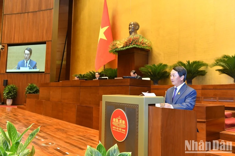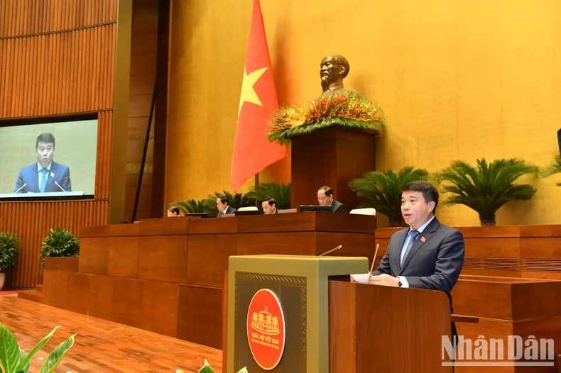 Quốc hội nghe trình bày các tờ trình, báo cáo về điều chỉnh chủ trương đầu tư Chương trình mục tiêu quốc gia phát triển kinh tế-xã hội vùng đồng bào dân tộc thiểu số và miền núi giai đoạn 2021-2030. (Ảnh: ĐĂNG KHOA)