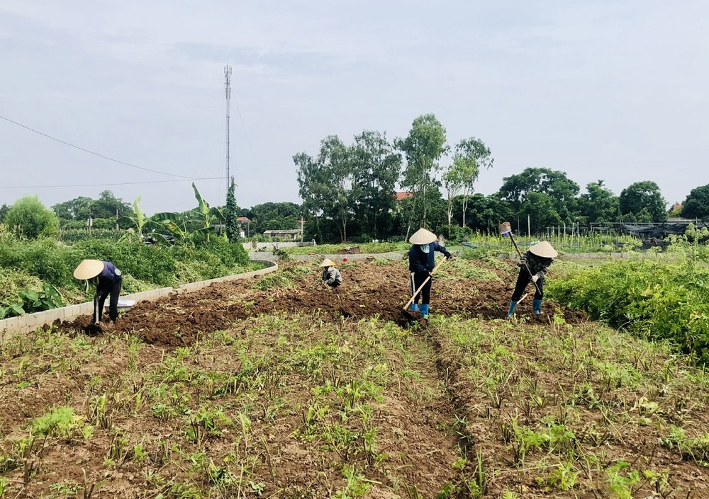Nông dân xã Thụy Lôi thu hoạch bạch chỉ