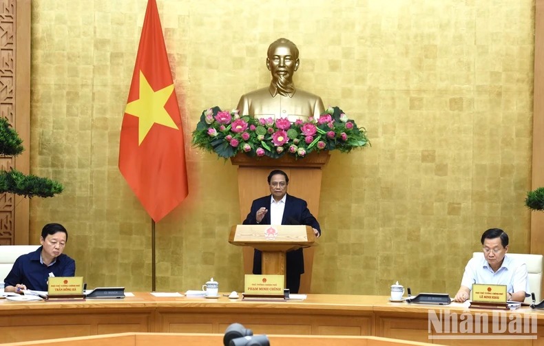 Thủ tướng Phạm Minh Chính phát biểu ý kiến chỉ đạo phiên họp. (Ảnh: TRẦN HẢI)