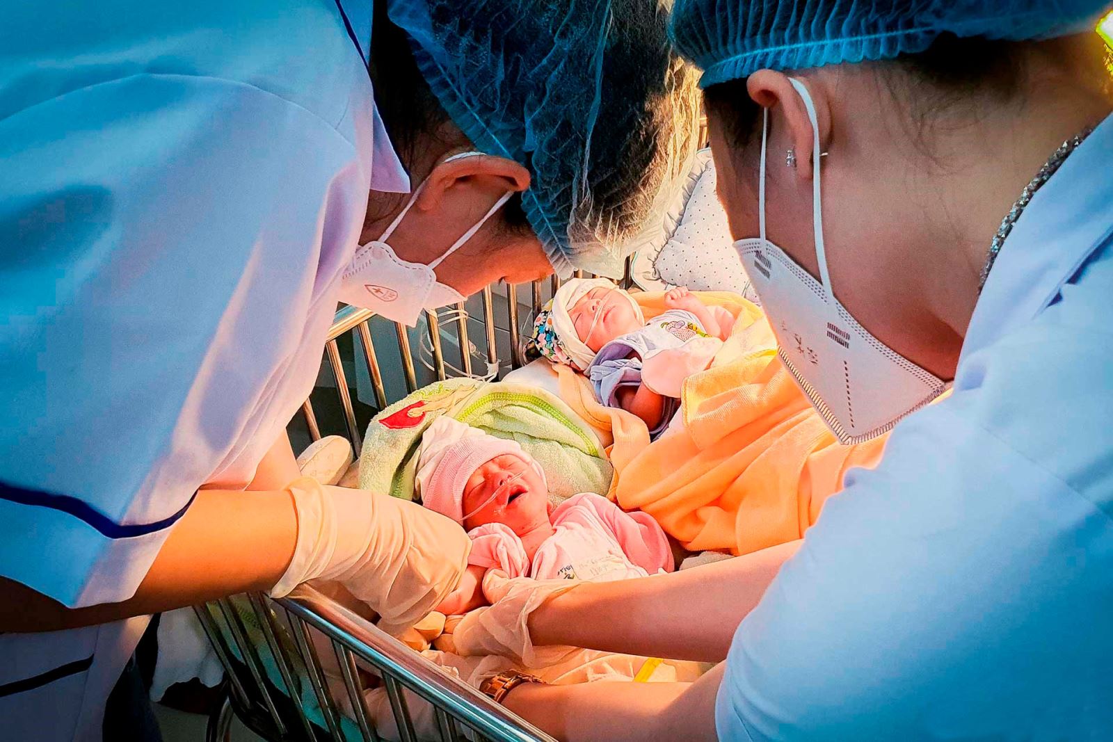 Các bác sĩ chăn sóc trẻ sơ sinh _Ảnh: TTXVN