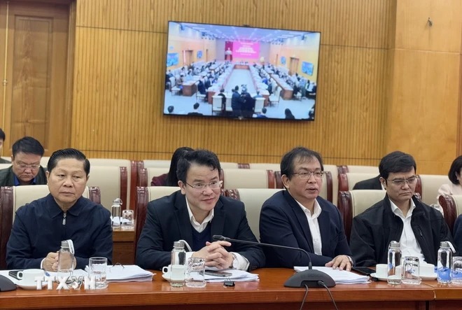 Phó Bí thư Thường trực Đảng ủy Khối Lại Xuân Lâm phát biểu tại Hội nghị. (Ảnh: Diệp Trương/TTXVN)