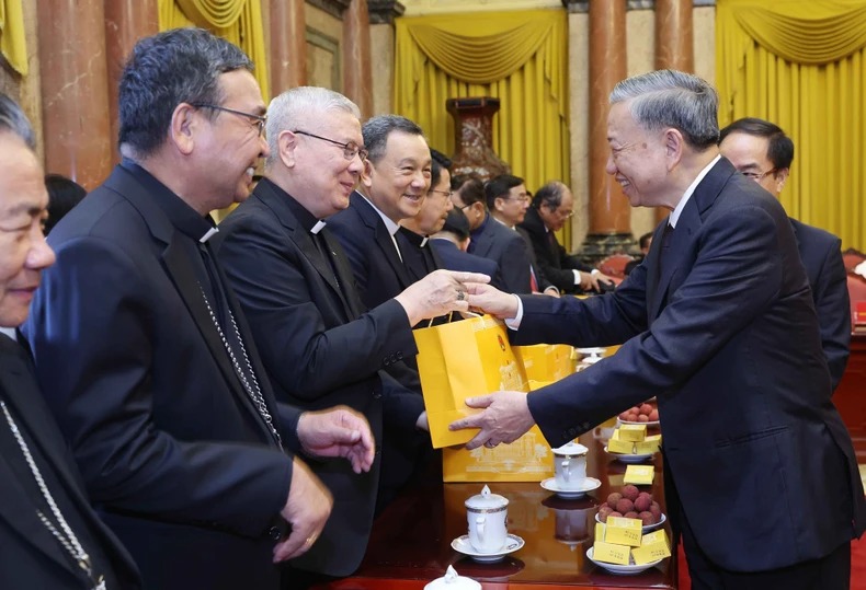 Chủ tịch nước Tô Lâm gửi tới các vị lãnh đạo và gửi đến toàn thể cộng đồng, chư vị, chức sắc, đồng bào tôn giáo, có đạo cả nước lời thăm hỏi ân cần, sâu sắc của đồng chí Tổng Bí thư Nguyễn Phú Trọng.