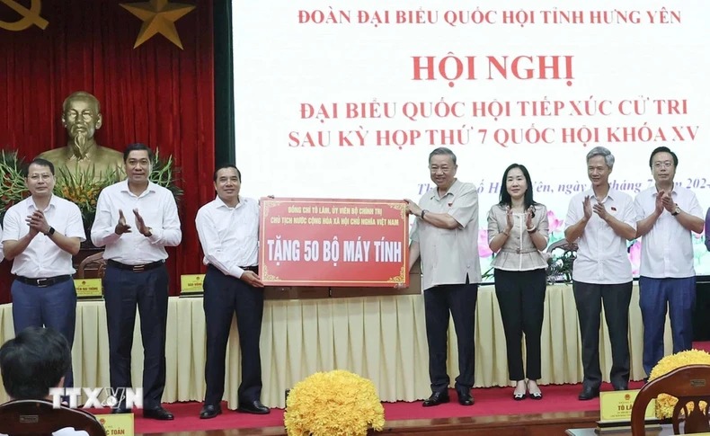 Chủ tịch nước Tô Lâm tặng 50 bộ máy tính cho học sinh thành phố Hưng Yên.
