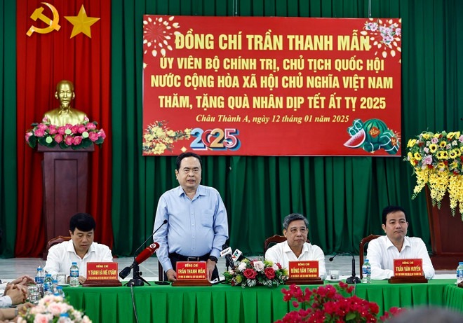 Nhân dịp đón Tết cổ truyền của dân tộc Xuân Ất Tỵ, sáng 12/1, Chủ tịch Quốc hội Trần Thanh Mẫn và Đoàn công tác của Trung ương đã thăm, tặng quà Tết gia đình chính sách, người nghèo, đồng bào dân tộc thiểu số, chiến sỹ lực lượng vũ trang, công nhân, người lao động có hoàn cảnh khó khăn trên địa bàn tỉnh Hậu Giang.