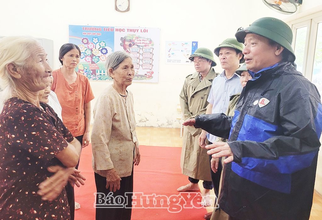 Đồng chí Chủ tịch UBND tỉnh Trần Quốc Văn thăm hỏi, động viên người dân phải di dời do ngập lụt tại xã Thuỵ Lôi (Tiên Lữ)