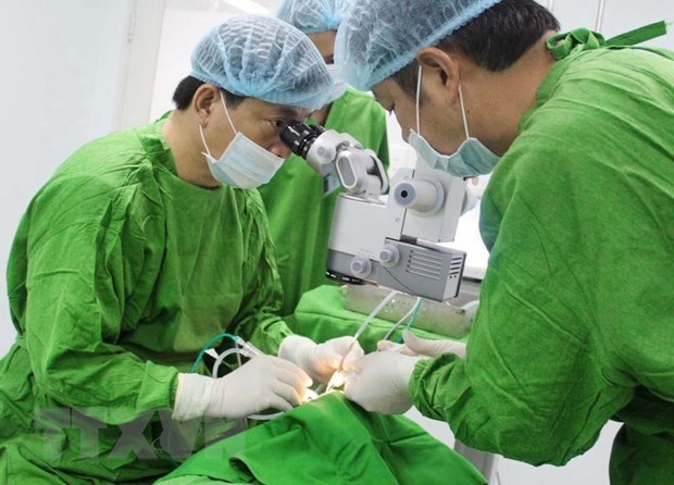 Bác sỹ Việt Nam thực hiện phẫu thuật nội soi tại Bệnh viện Chợ Rẫy Phnom Penh. (Nguồn: TTXVN)