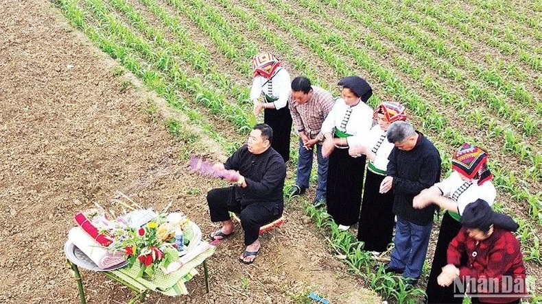 Lễ cầu mưa của người dân tộc Thái ở xã Mường Sang, huyện Mộc Châu, Sơn La. (Ảnh: QUỐC TUẤN)