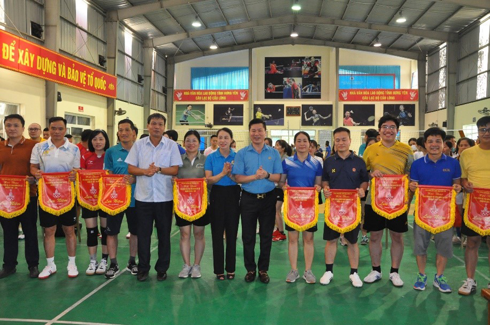 Ban tổ chức trao cờ lưu niệm cho các công đoàn cơ sở tham gia hội thao