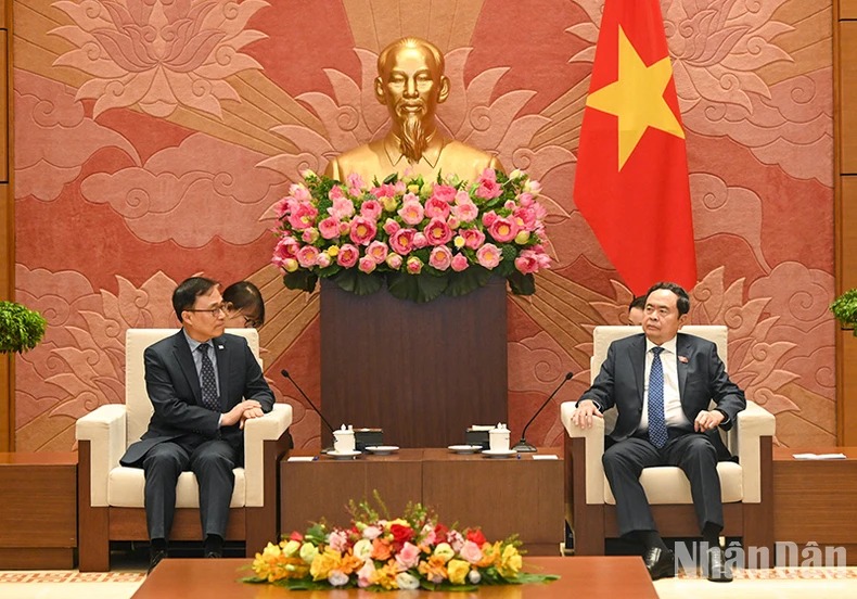 Chủ tịch Quốc hội Trần Thanh Mẫn phát biểu tại cuộc tiếp Đại sứ Hàn Quốc Choi Young Sam.