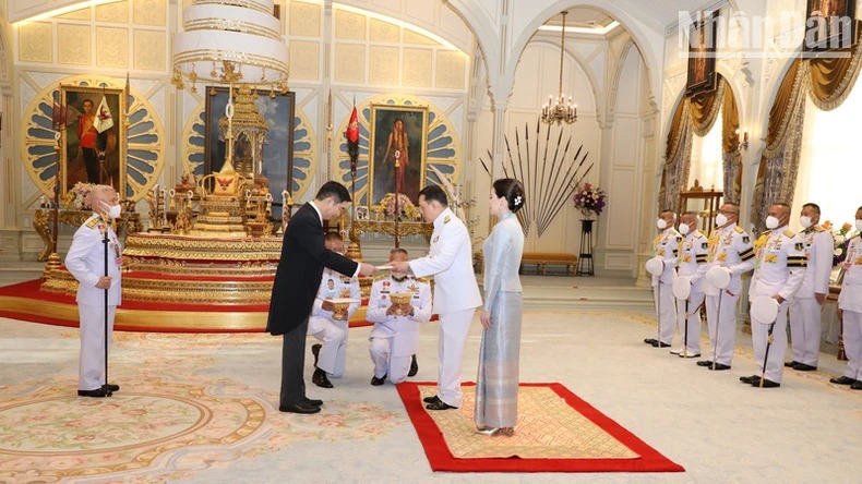 Đại sứ Phạm Việt Hùng trình Quốc thư lên Nhà Vua Thái Lan Maha Vajiralongkorn Phra Vajiraklaochaoyuhua. (Ảnh: Đại sứ quán Việt Nam tại Thái Lan cung cấp)