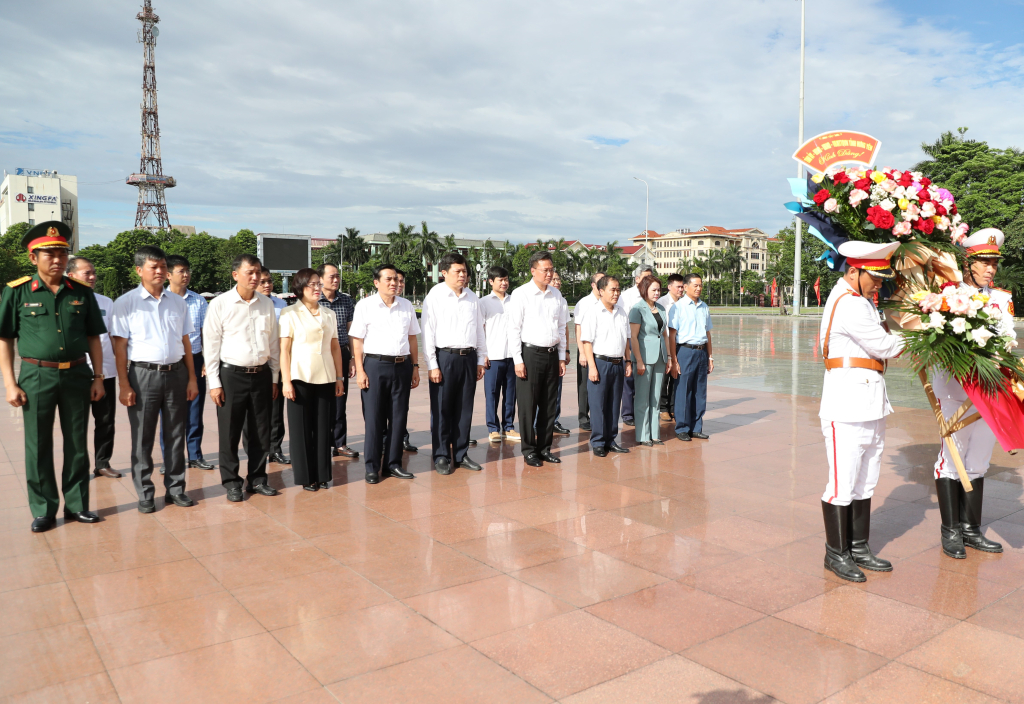 Dự lễ dâng hoa có các đồng chí: Nguyễn Hữu Nghĩa, Ủy viên Ban Chấp hành Trung ương Đảng, Bí thư Tỉnh ủy; Trần Quốc Toản, Phó Bí thư Thường trực Tỉnh ủy, Chủ tịch HĐND tỉnh; các đồng chí trong Ban Thường vụ Tỉnh uỷ, Thường trực HĐND tỉnh, lãnh đạo UBND tỉnh, Ban Thường trực Ủy ban MTTQ Việt Nam tỉnh, lãnh đạo các ban, sở, ngành, đoàn thể tỉnh...