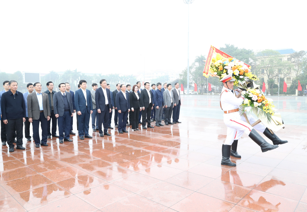 Tại Đài tưởng niệm các anh hùng liệt sĩ tỉnh, các đồng chí lãnh đạo tỉnh kính cẩn nghiêng mình trước anh linh các anh hùng liệt sĩ, những người đã hy sinh vì sự nghiệp giải phóng dân tộc, thống nhất đất nước.