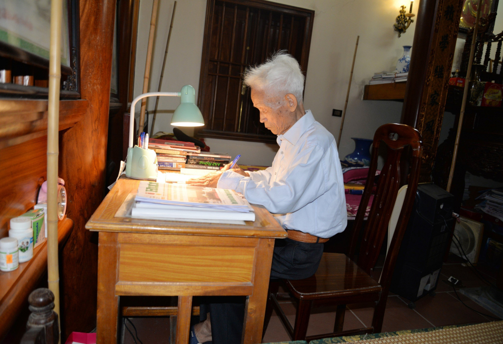 Đảng viên Nguyễn Tiến Thiệp, thường xuyên đọc sách để rèn luyện trí nhớ