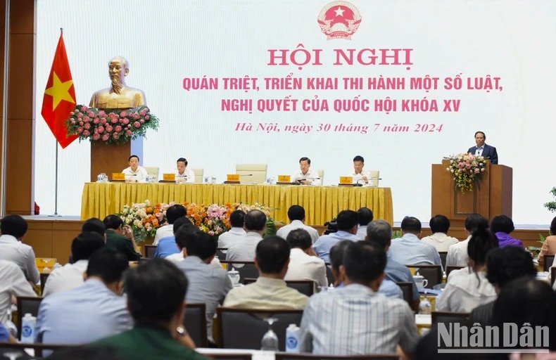 Thủ tướng Phạm Minh Chính chủ trì Hội nghị quán triệt, triển khai một số Luật, Nghị quyết của Quốc hội khóa XV. (Ảnh: Trần Hải)