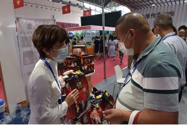 Khách tham quan tìm hiểu thông tin về sản phẩm tại một Hội chợ Trung Quốc-ASEAN. (Nguồn: TTXVN)