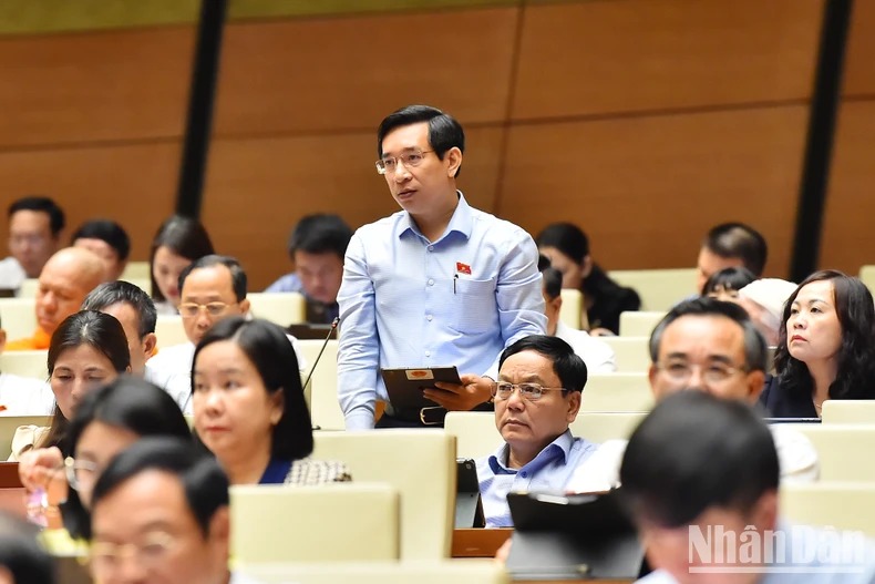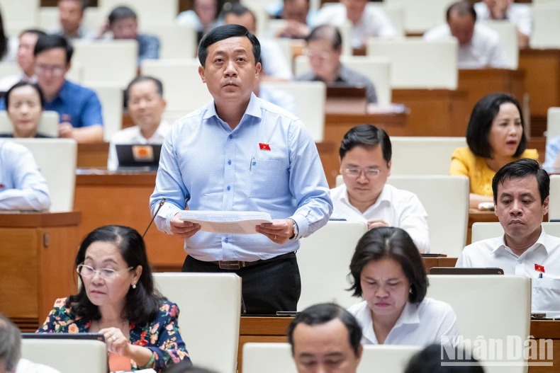Đại biểu Hà Phước Thắng nêu quan điểm về sự cần thiết phải bổ sung cho phép khai thác, sử dụng gầm cầu làm bãi đỗ xe. (Ảnh: THỦY NGUYÊN).