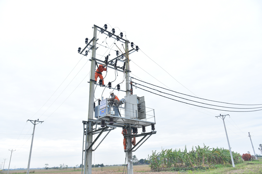 Nhân viên Điện lực Ân Thi sửa chữa, nâng cấp lưới điện