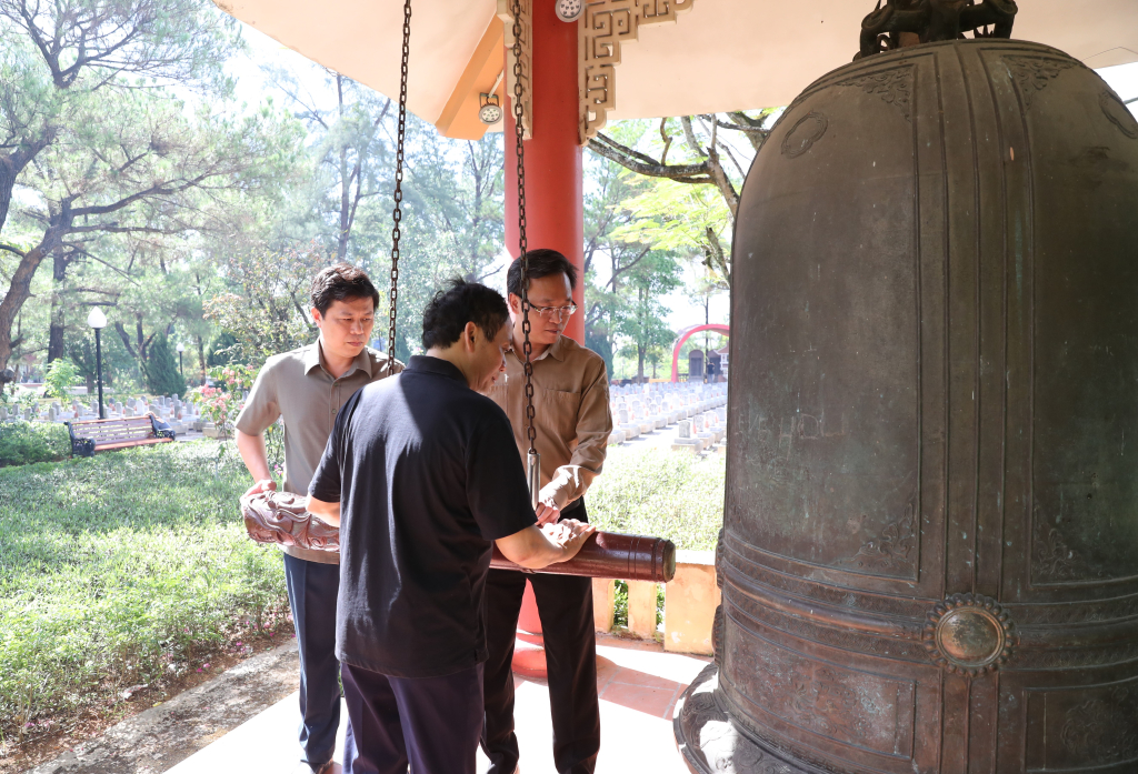 Các đồng chí Thường trực Tỉnh ủy thỉnh chuông tưởng niệm các anh hùng liệt sĩ tại Nghĩa trang Liệt sĩ quốc gia Trường Sơn