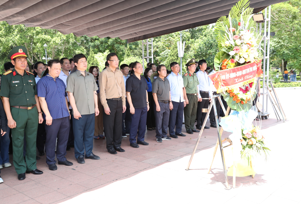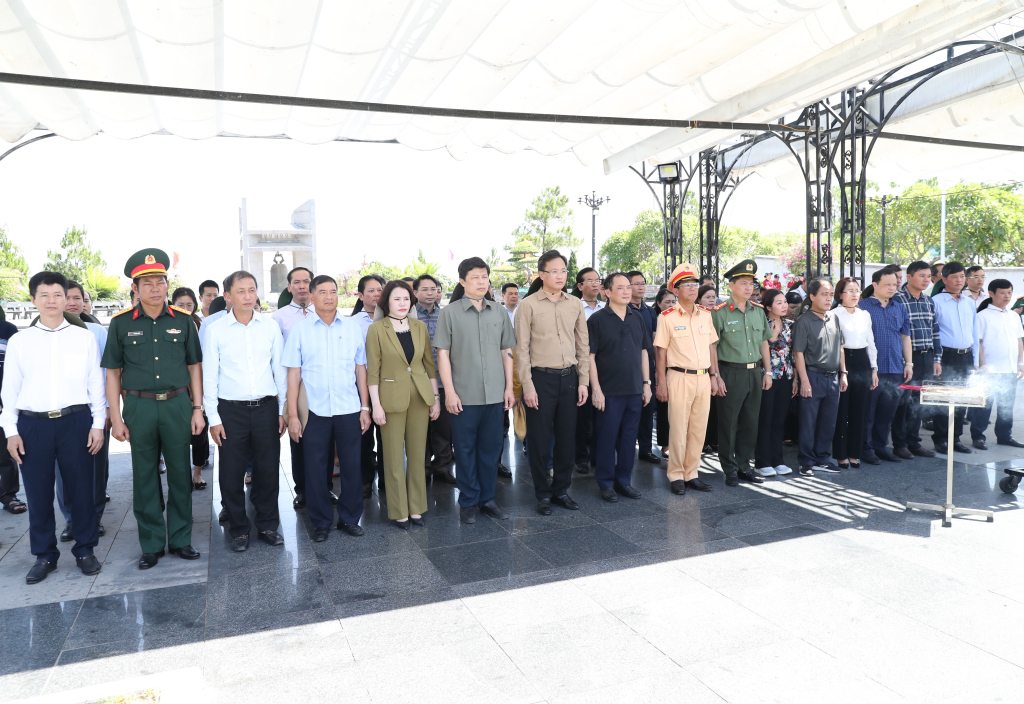 Đoàn cán bộ tỉnh đến dâng hương, dâng hoa tưởng niệm các anh hùng liệt sĩ tại Nghĩa trang Liệt sĩ quốc gia Trường Sơn (huyện Gio Linh, tỉnh Quảng Trị). Nghĩa trang Liệt sĩ quốc gia Trường Sơn là nơi yên nghỉ của hơn 10.200 liệt sĩ đã hy sinh trên tuyến đường mòn Hồ Chí Minh trong thời kỳ kháng chiến chống Mỹ, cứu nước. Trong khuôn viên nghĩa trang có riêng khu mộ các liệt sĩ tỉnh Hưng Yên và tỉnh Hải Dương, trong đó tỉnh Hưng Yên có 332 liệt sĩ.