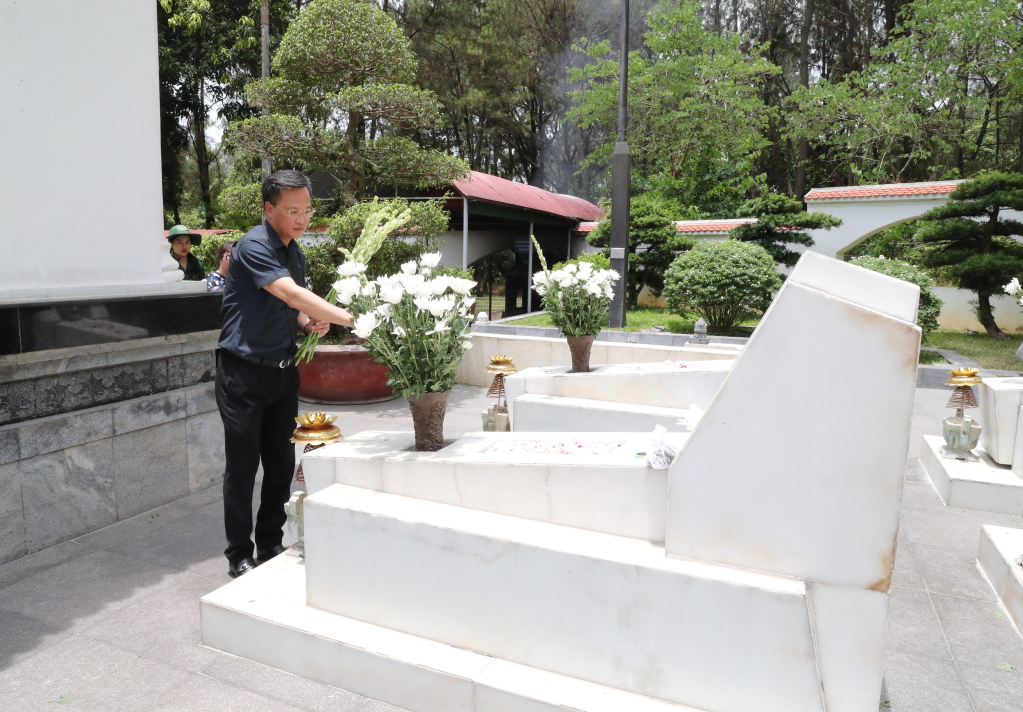 Đồng chí Trần Quốc Toản, Phó Bí thư Thường trực Tỉnh ủy, Chủ tịch HĐND tỉnh dâng hoa tại khu mộ 10 nữ thanh niên xung phong tại Khu di tích lịch sử quốc gia đặc biệt Ngã ba Đồng Lộc