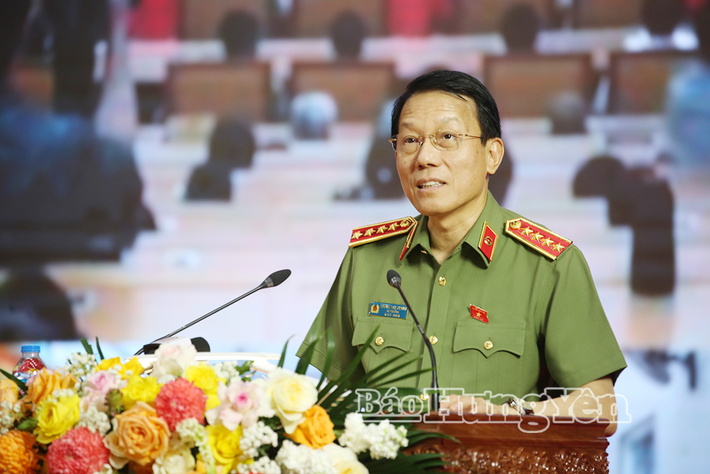 Đại tướng Lương Tam Quang, Ủy viên Bộ Chính trị, Bộ trưởng Bộ Công an phát biểu tại hội nghị.