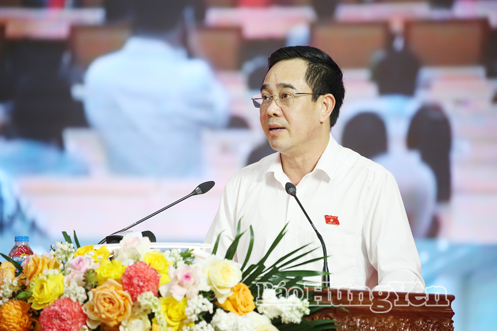 Thay mặt lãnh đạo tỉnh, đồng chí Nguyễn Lê Huy, Ủy viên Ban Thường vụ Tỉnh ủy, Phó Chủ tịch Thường trực UBND tỉnh giải đáp một số ý kiến, kiến nghị của cử tri thuộc thẩm quyền; đồng thời thông báo với cử tri một số giải pháp trọng tâm tỉnh đã, đang và sẽ triển khai để thúc đẩy kinh tế - xã hội phát triển, quản lý chặt chẽ việc ứng dụng công nghệ thông tin, chuyển đổi số trong các nhà trường, quản lý tốt giá cả thị trường, bảo vệ môi trường và làm tốt hơn nữa việc bảo đảm an toàn thực phẩm.