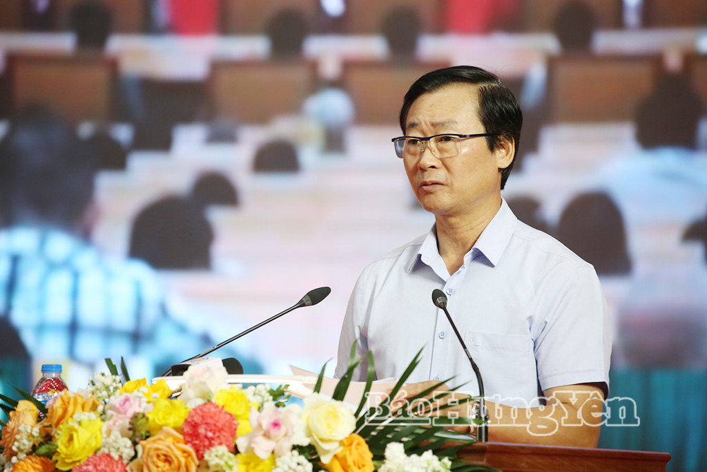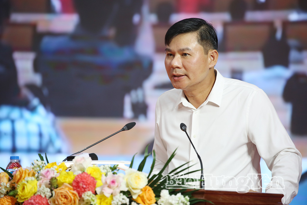 Đồng chí Phạm Quang Ngọc, Ủy viên Ban Chấp hành Trung ương Đảng, Bí thư Tỉnh ủy phát biểu tại hội nghị.