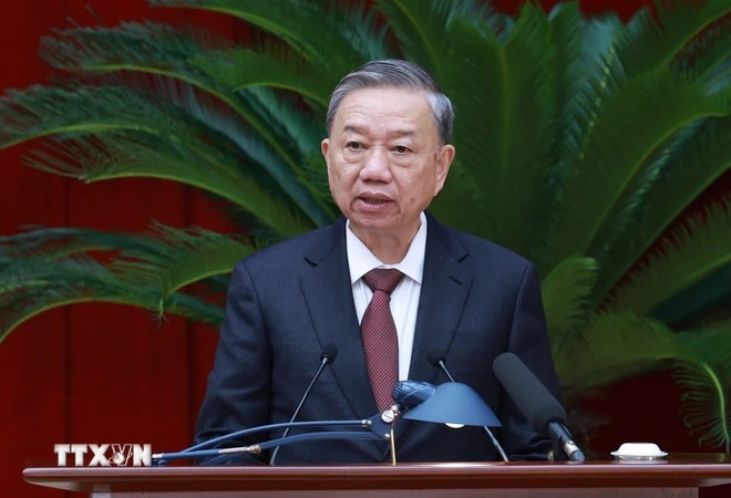 Tổng Bí thư, Chủ tịch nước Tô Lâm phát biểu bế mạc Hội nghị Trung ương lần thứ mười, khóa XIII. (Ảnh: Dương Giang/TTXVN)