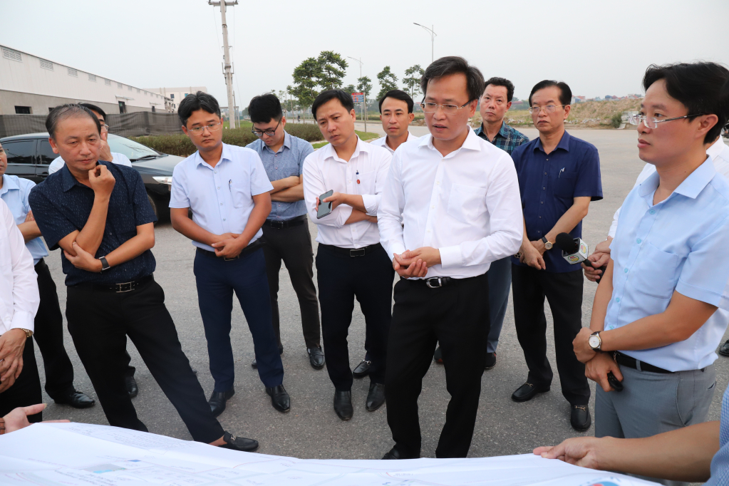 Chủ đầu tư Dự án đầu tư xây dựng và kinh doanh kết cấu hạ tầng KCN Thăng Long II mở rộng (giai đoạn 3) báo cáo tiến độ xây dựng với đồng chí Bí thư Tỉnh ủy và đoàn công tác