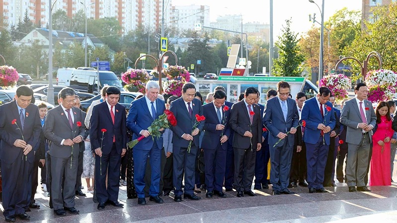 Chủ tịch Quốc hội Trần Thanh Mẫn dâng hoa tại Tượng đài Chủ tịch Hồ Chí Minh ở thủ đô Moskva, Nga. (Ảnh TTXVN)