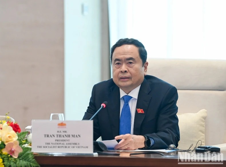 Chủ tịch Quốc hội Trần Thanh Mẫn phát biểu tại cuộc tiếp. (Ảnh Duy Linh)